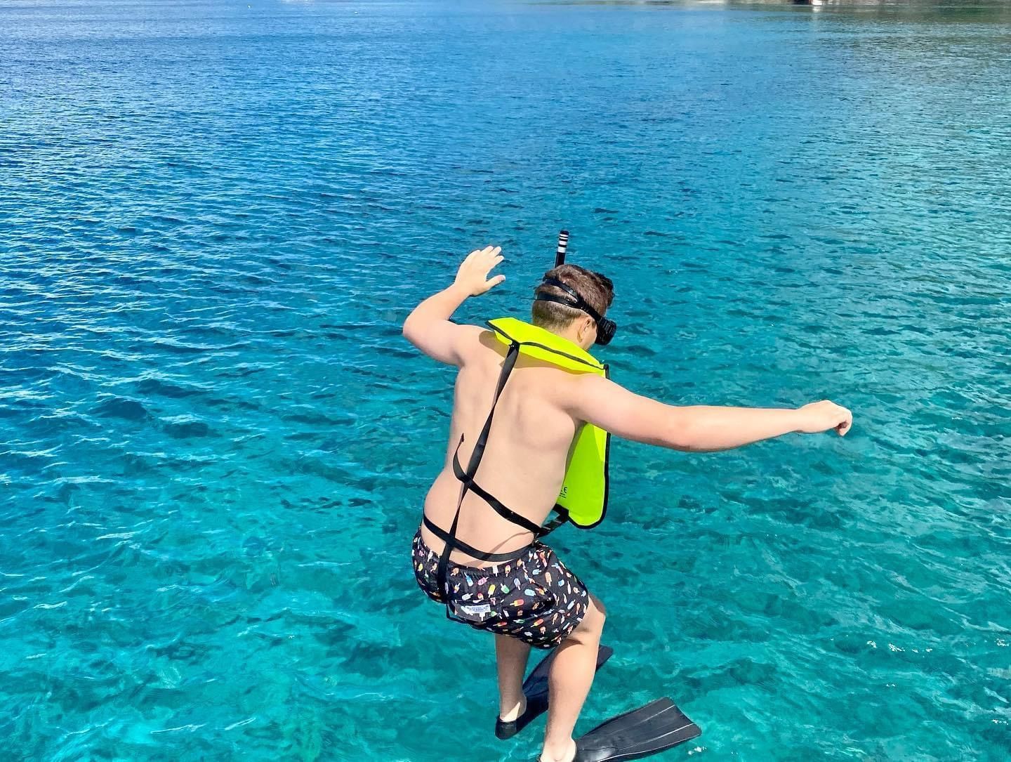 Moko Jumbie is a 36-foot power catamaran, powered by twin 250 hp Yamahas, ensuring a swift and efficient journey to your destination. She features a spacious shaded cockpit area with ample cushioned seating and a table for your comfort. Onboard, there is a private bathroom and a fresh water washdown to rinse off after snorkeling.